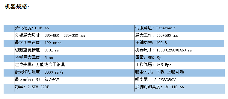 分板精度:0.05 mm