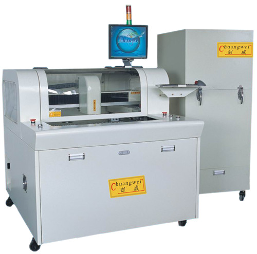 自動切板機CW-F01主要是利用銑刀高速運轉將多連片剛性PCB板,按預先編程路徑將之分割開來的設備,克服了以往走板式和走刀式切板機只能直線分割的局限性。應用范圍:適用于郵票孔連接且不規則的剛性PCB板分割。